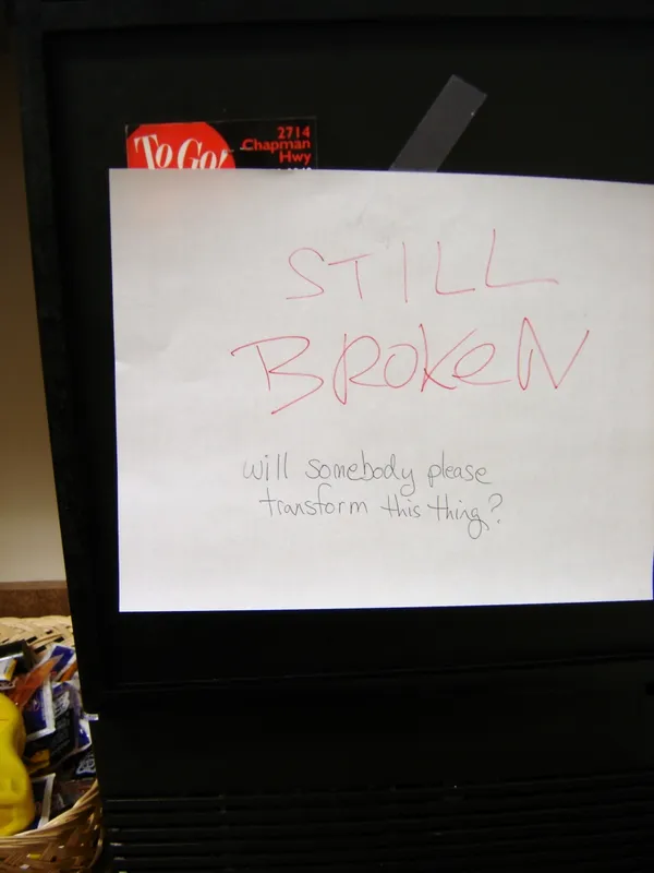A plea from newsrooms Jack D. Lail ~1 min read July 3, 2008 Categories Uncategorized Sign on icemaker in the newsroom at the Knoxville News Sentinel. The newsroom is in the midst of a reorganization and redefinition that is called “transformation.” And, no, we haven’t lost our sense of humor. Previous Frightsizing potential Next Recall on fireworks that make ‘loud bang’