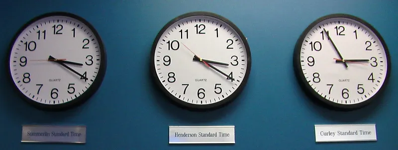 There were several clocks on the wall in true world news fashion of distant cities, but these were all cities covered by the Greenspun Web crew around Las Vegas so they all had the same time except “Curley Standard Time.”