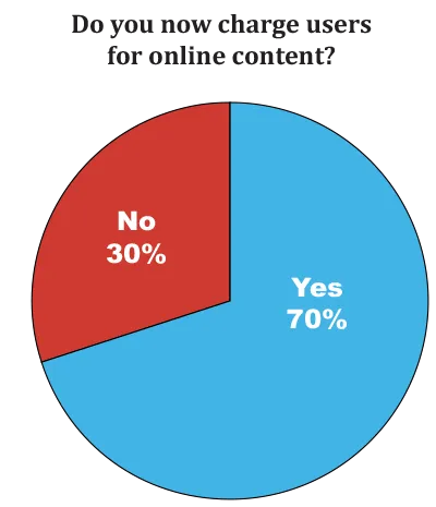 70 percent of newspapers now have some sort of paywall (see pie chart on right), according to a survey by the Reynolds Journalism Institute. That’s up from 41 percent in 2011 and 47 percent in 2012.