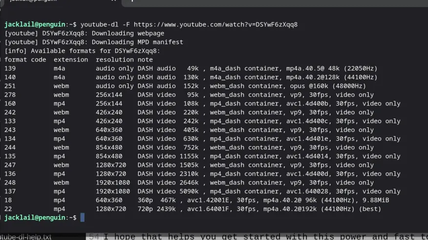 Youtube-dl format list.