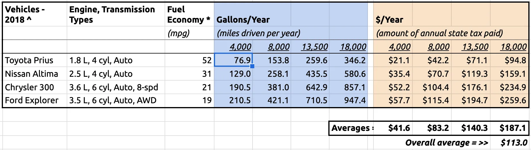Even using the state’s average of a 22.4 mpg car, I would be paying close to a double “share.”